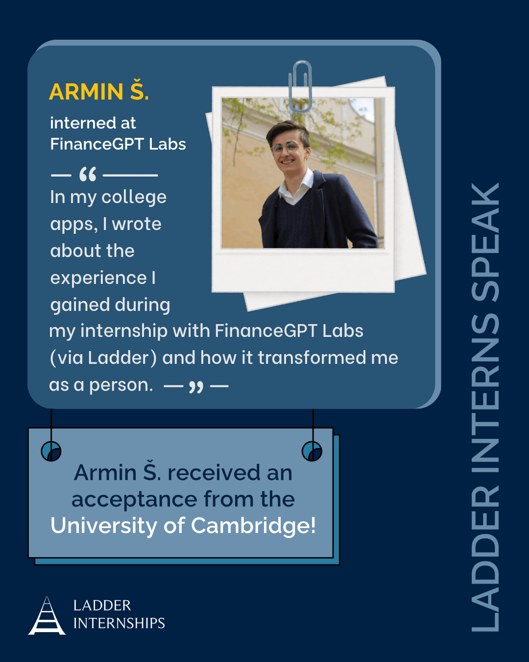 Ladder Internships provides students with the chance to gain practical insights into the working world. Collaborate with industry leaders, explore real work environments, and create impactful projects, whether it’s a market report, app development, or strategic planning. This unique experience not only sets you apart in college admissions but also helps you build a professional network early on, connecting with individuals from prestigious institutions like Harvard Business School, Y Combinator, and former McKinsey experts. It’s a one-of-a-kind opportunity to explore careers, make a real-world impact, and establish valuable connections.